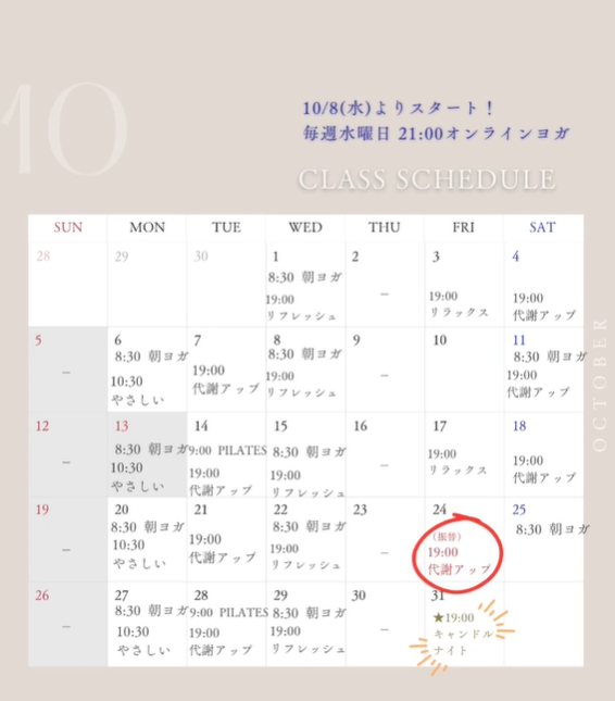10/25(土) 代謝アップ→10/24(金)へ振替