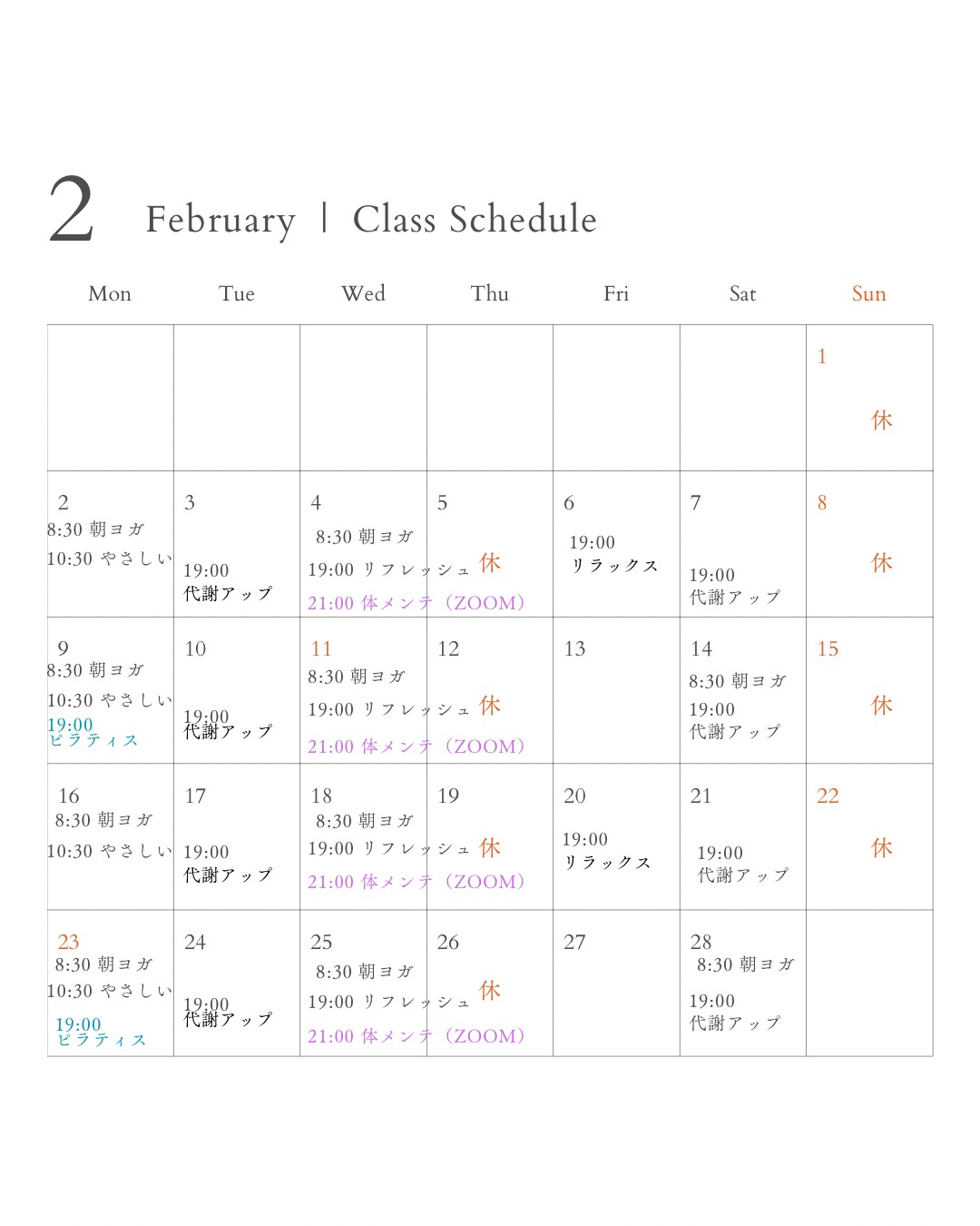 2月のスケジュールをお知らせいたします。